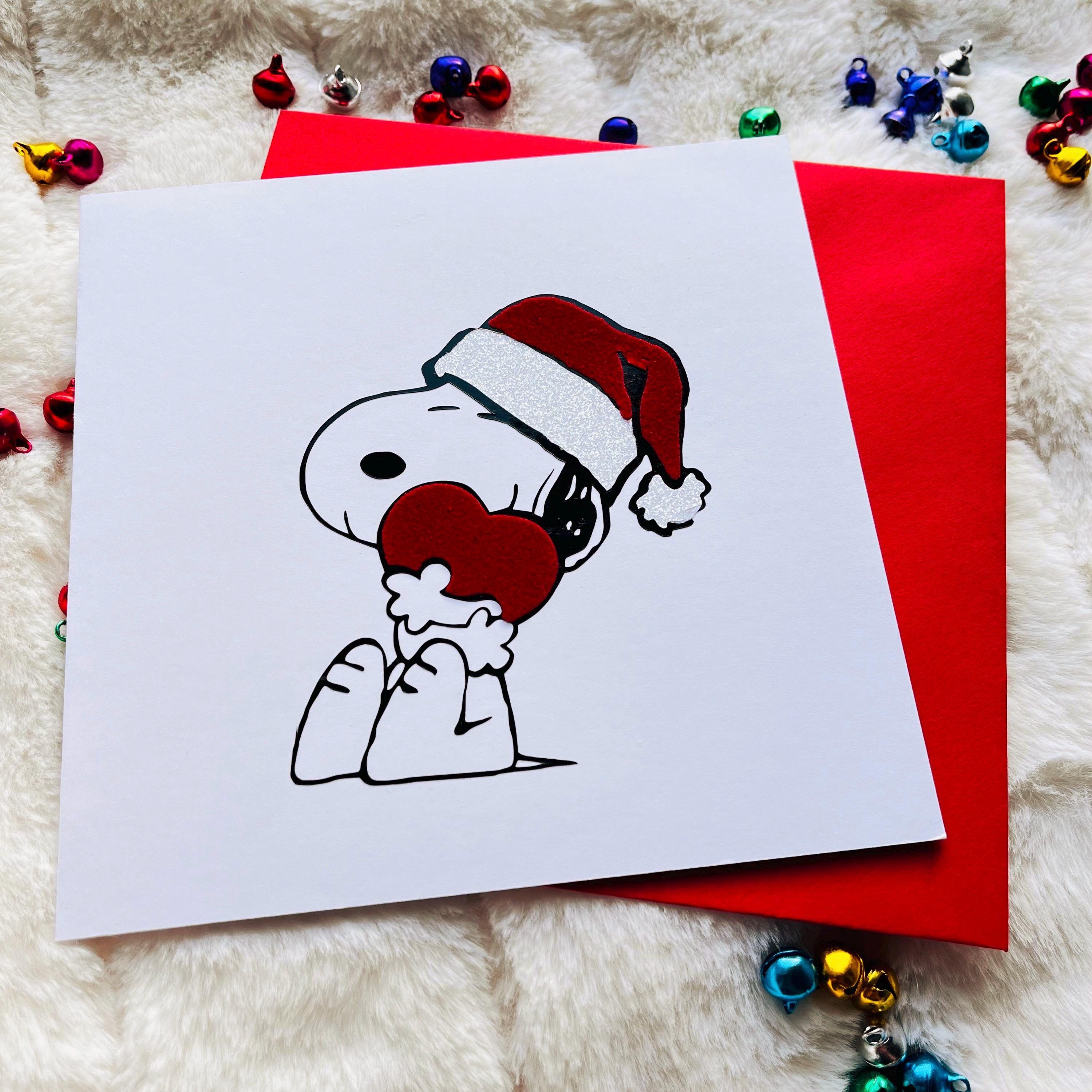 Step back into the vibrant era of the 60s and 70s with this charming Christmas card, inspired by retro Snoopy designs and crafted to bring a nostalgic touch to your holiday greetings. Featuring a festive red envelope that perfectly complements the vintage vibe, this card is a heartfelt gift for your husband, wife, or bestie. Handmade with care, it combines classic Peanuts inspired art with a unique vinyl cut design that sparkles with velvet and glitter accents.