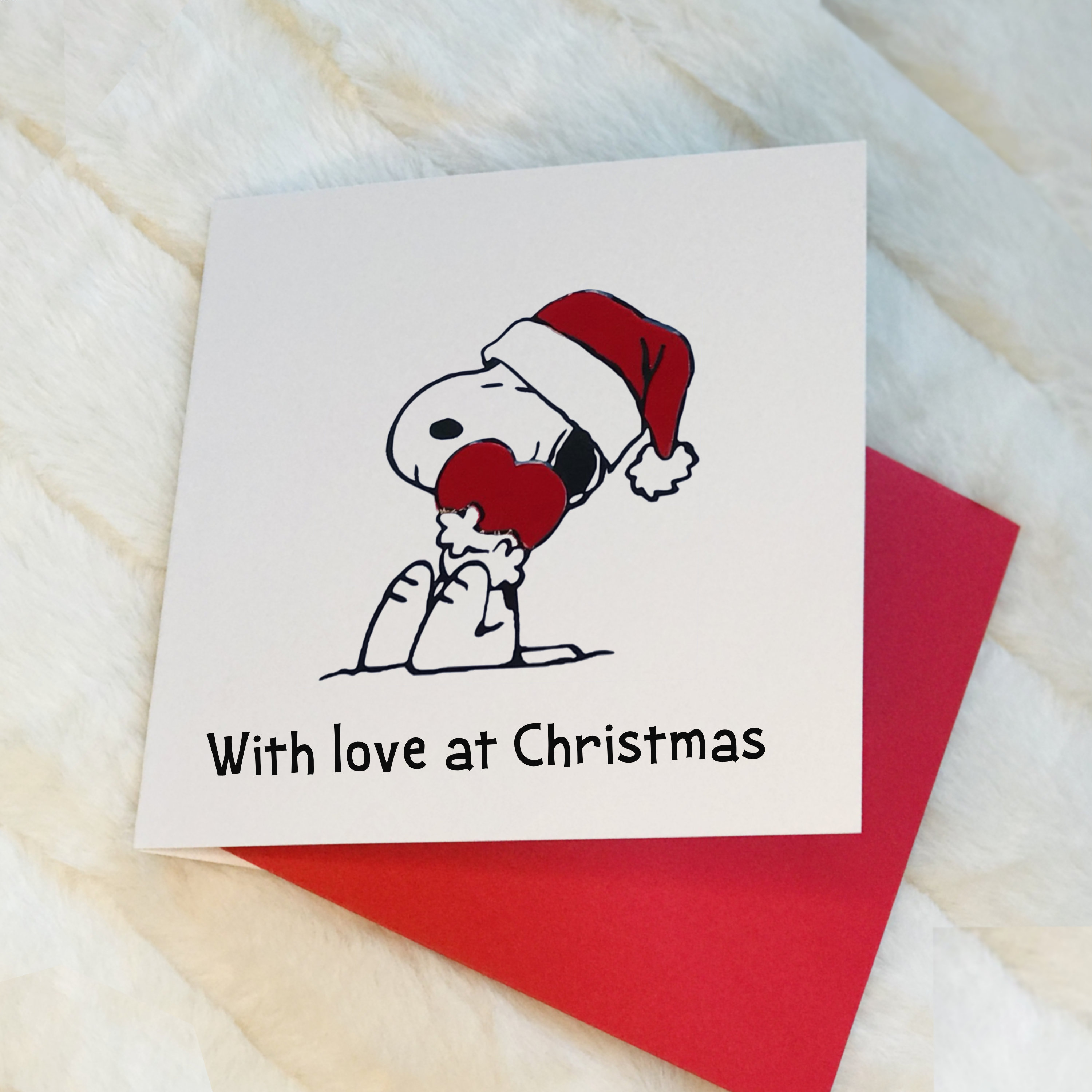 - Includes a blank white paper lining for your personal message or an optional free custom message printed inside in matching Snoopy font style