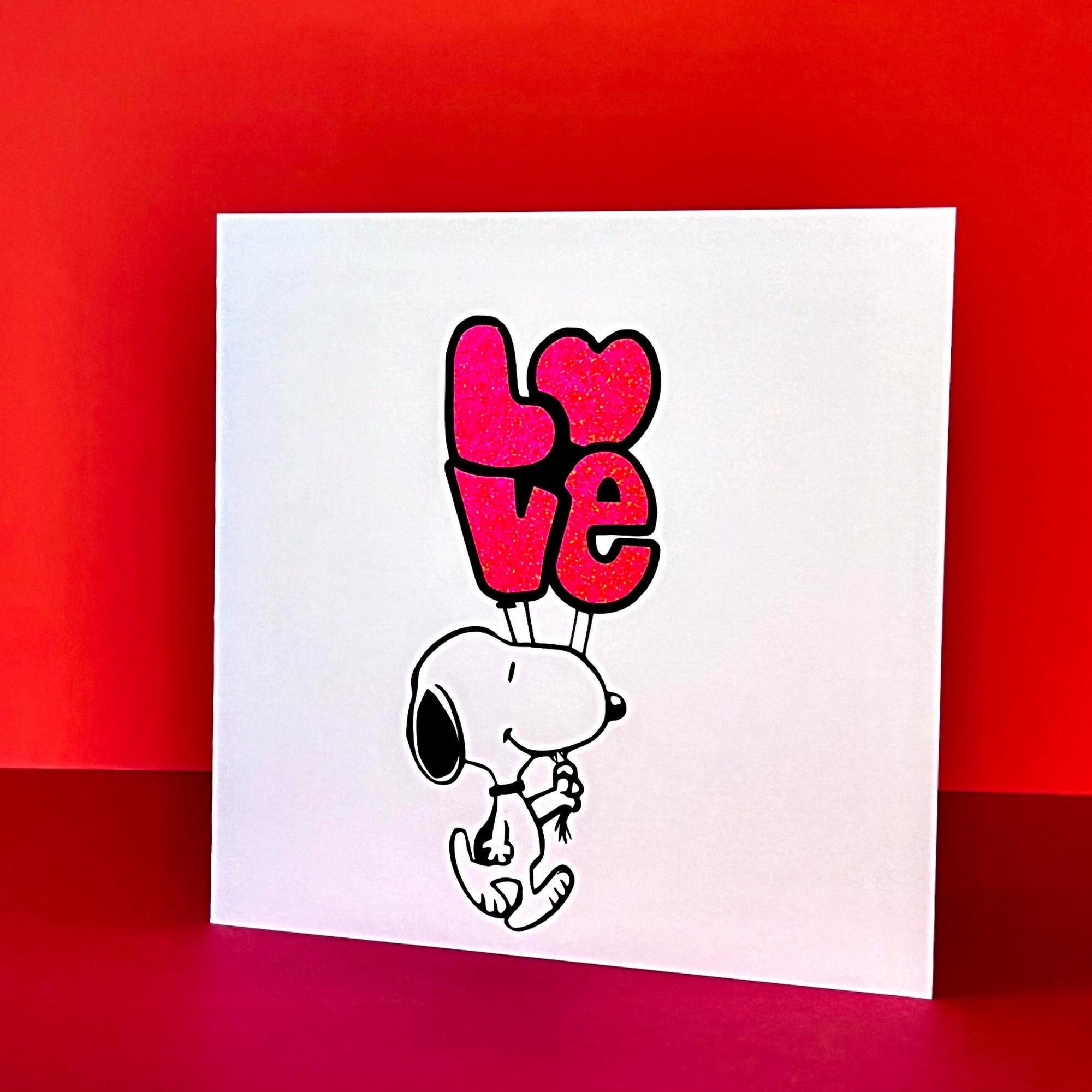 Celebrate nostalgia and heartfelt moments with this charming Snoopy card, inspired by retro childhood memories and designed for dog lovers everywhere. Featuring the iconic cartoon dog in a vibrant, handmade design, this unique handmade card captures the spirit of Peanuts with a playful love balloon motif. Perfect for any occasion, this greeting card brings a touch of 70s nostalgia and Gen X charm to your heartfelt messages.