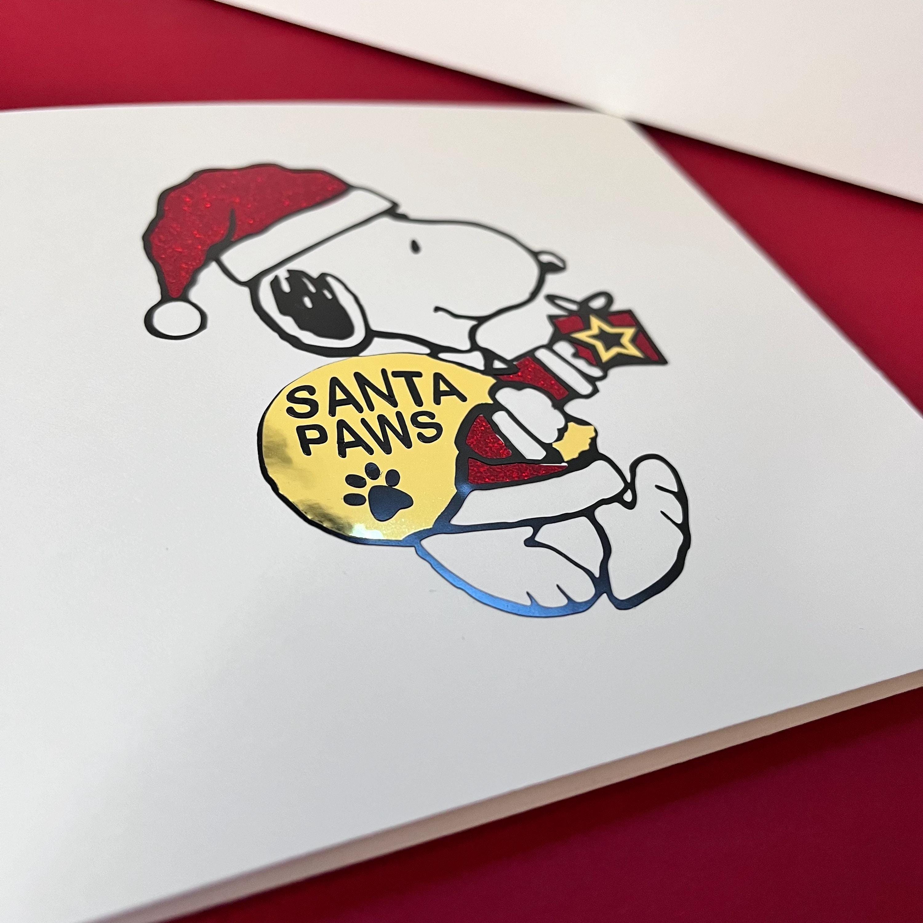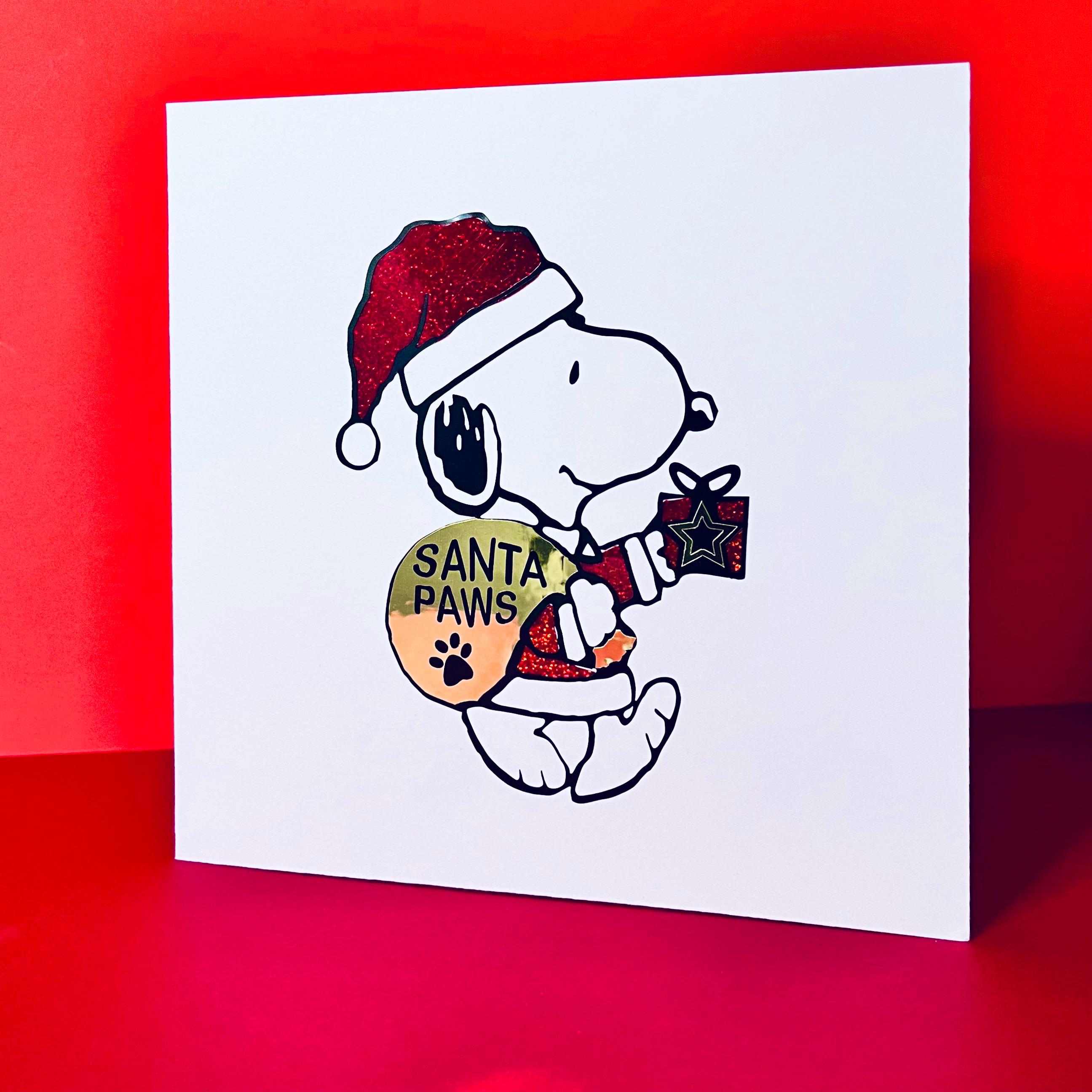 This handmade timeless Christmas card features everyone’s favourite dog, Snoopy. The beloved comic strip and cartoon character is sure to capture the hearts of children and adults alike. The perfect way to sprinkle a touch of nostalgia at Christmastime and sure to bring back fond memories of childhood Christmas’ past.