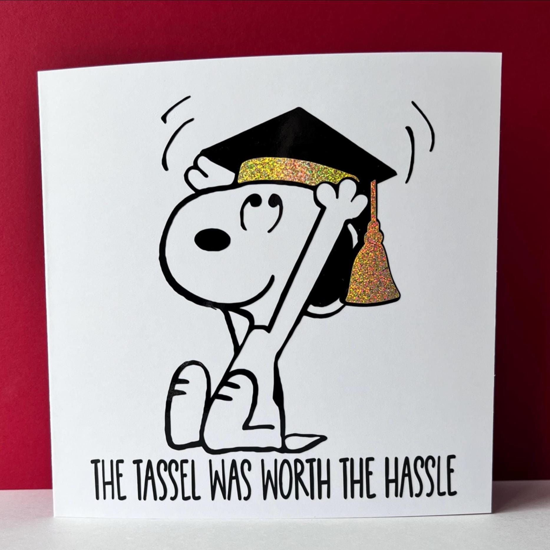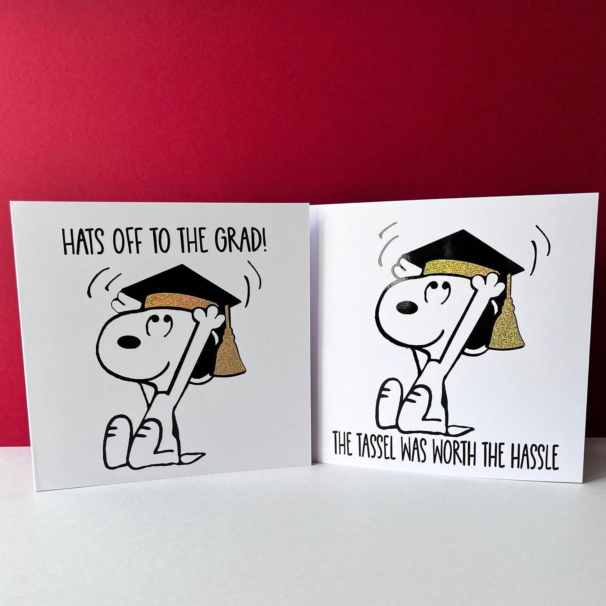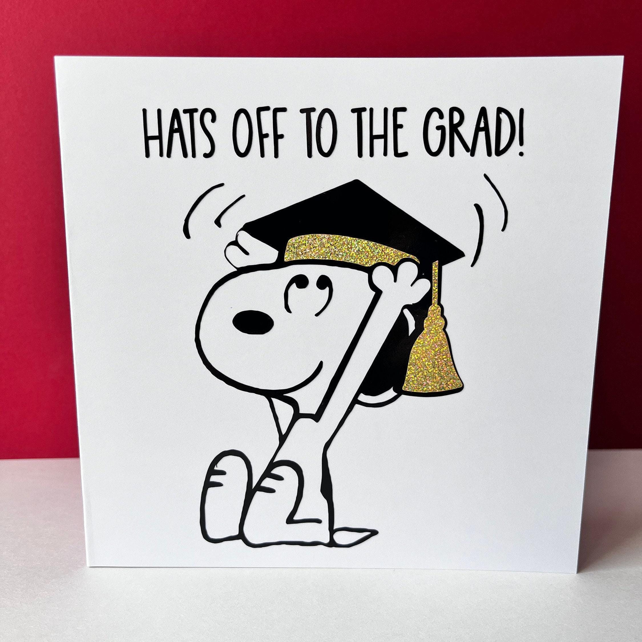 Celebrate achievement with a charming, retro-inspired graduation card featuring the beloved Snoopy dog. This cute, personalised card is crafted with care, making it a heartfelt way to say "You did it" to a graduate embarking on their next adventure. Its blank inside design offers the perfect canvas for your own special message.